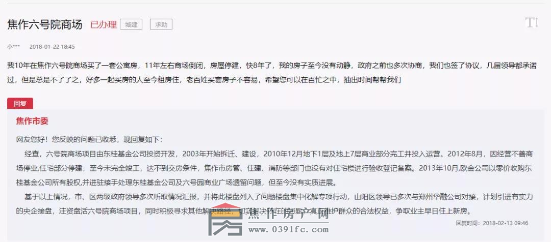 關(guān)于六號(hào)院爛尾一事,網(wǎng)上有零零散散的消息,大多是投訴、上訪和論壇討論。