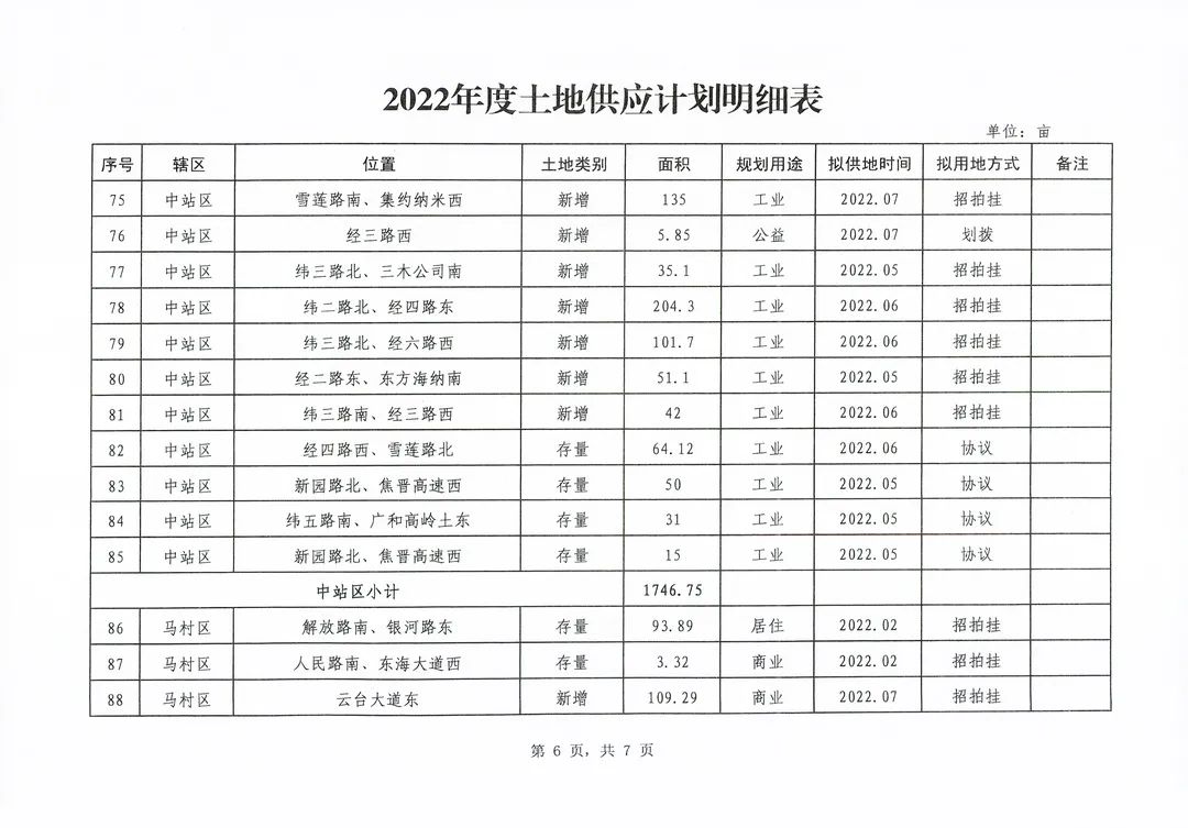 摘要:近日,焦作2022年供地計(jì)劃出爐其中包括新增和存量各類用地共涉及99宗地塊面積達(dá)7717.27畝其中,解放區(qū)15宗共計(jì)913.13畝山陽區(qū)48宗共計(jì)3246.44畝中站區(qū)22宗共計(jì)1746.75畝馬村區(qū)7