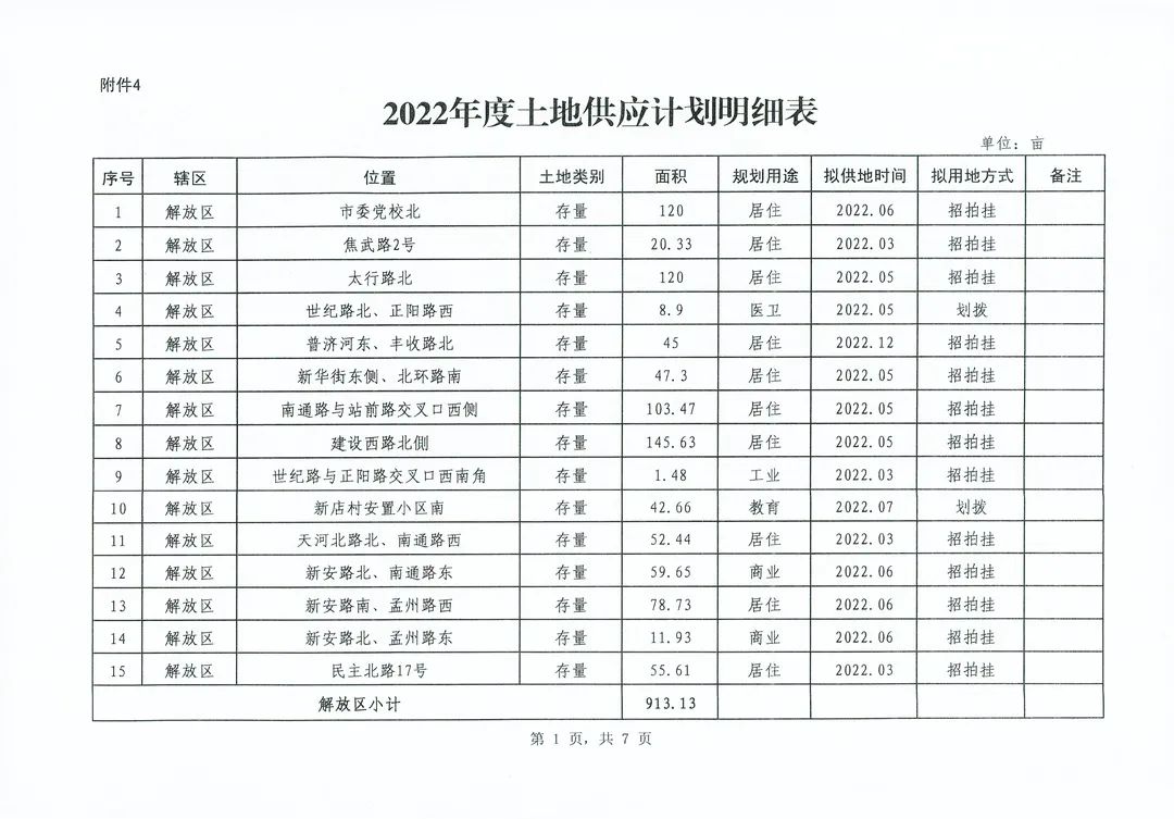焦作2022年供地計(jì)劃出爐共涉及99宗地塊面積達(dá)7717.27畝